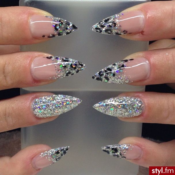 Or you can just have some glitters on the nails between the nails to make your nails shine all the time. Introducing some bling into the design may be that one thing that is still missing. Because of the sharp nail shape, so it is very bold to wear daily. And for the color, you can have any color too. They are all time favorites of such singers as rihanna and beyonce.